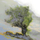 Uma bela pintura digital a óleo de uma árvore solitária na montanha.