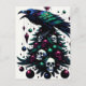 Uma árvore de Natal com crânios e um corvo sentado nela