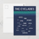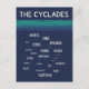 Um simples design com um padrão de ondas de verão que apresenta as principais ilhas das Cíclades no Mar Egeu, em Grécia. Inclui Mykonos, Santorini, Paros, Antiparos, Delos, Serifos, Sifnos, Andros, Tinos, Kea, Folegandros, Milos, entre outros.