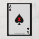 A marca de vidro vermelha da viúva preta está estampada na pá desta design de cartão de ás.