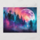 Cartão Postal Ascensão de Lua cheia vibrante sobre uma Floresta