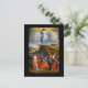 Crescendo em nuvens ouros Jesus olha para seus seguidores. O fundo inclui cidades do castelo e montanhas. Pintura do artista italiano Benvenuto Tisi c1510-1520.