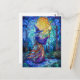 Arte de vidro de um bruxo numa floresta com itens mágicos e um funcionarios.