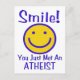 Coloque um rosto humano no ateísmo com um rosto amarelo brilhante esboçado em azul com letras azuis que diz: "Sorria! Acabou de conhecer um ATEISTA."