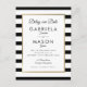 Apresentando um fundo clássico em preto e branco listrado, este retardo elegante nosso cartão de data apresenta uma elegante borda de folha de ouro falsa que enquadra seus detalhes em tipografia moderna. Projetado por Thisnotme©