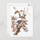 Cartão Postal Audubon Downy Woodpecker Casal com Flores