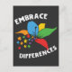 Cartão Postal Autism Awareness Embrace Differences Puzzle