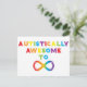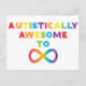 Design feito com amor para a conscientização do autismo. Letras coloridas formam a frase 'Autisticamente Incrível ao Infinito' com um símbolo de infinito.
