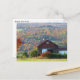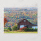 Este é um cartão postal de um celeiro branco e vermelho picuresco com colinas rolantes até onde o olho puder ver. As lindas cores do outono, de vermelho, amarelo, laranja, ouro e verde, estão em primeiro plano e pintam as encostas circundantes.