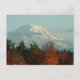 Neste outono, na foto do Monte Rainier, que sobe 14.411 pés acima do Puget Sound cerca de quilômetros a sudeste de Seattle, WA, a montanha mostra suas cores de queda. Árvores verdes escuras juntam-se às belas árvores caducas vermelhas e douradas que dançam e se curvam no primeiro plano para um vento forte. Os pântanos de nuvens enfumaçados sopram sobre o topo e o pé da montanha contra um céu azul claro. Se você olhar atentamente, você pode ver alguns pássaros negros sendo jogados ao redor do médio para a parte inferior direita da fotografia. Copyright Gail Storrs 2007.