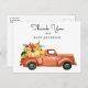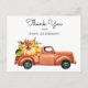 Obrigado seus convidados por comemorar a mamãe! Este obrigado que você faz com o cartão-postal mostra um caminhão-oficina laranja cheio de abóboras e folhagem de outono. Personalize com suas informações ou clique em "Clique para personalizar mais" para editar estilos de fonte, tamanho e cores.