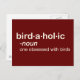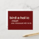 Este design de pássaro engraçado é formatado como uma definição que seria encontrada no dicionário. Aqui a palavra é birdaholic e a definição é "um obcecado por pássaros." Você pode conhecer alguns passarinhos assim, ou talvez você seja um birdholic você mesmo! Você pode personalizar totalmente este presente! Adicione texto, mude a cor, mova o design, escolha um estilo diferente - faça dele seu!