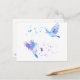 Cartão Postal Aves Azuis Voadoras Abstrato de Aquarelas