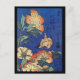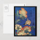 Linda colagem de arte japonesa safena apresentando um pássaro e flores exóticas. Azul profundo com peônias e hibisco e outras flores vermelhas e damascos. Perfeito para o jardineiro e amante de pássaros!