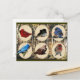 Possui um cardeal, pássaro azul, junco, utensílios domésticos e mais dois pássaros maravilhosos.