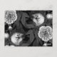 Cartão Postal Aves e flores de peônia monocromáticas, cinzas