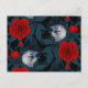 Cartão Postal Aves e flores vermelhas de pénia com folhas azuis
