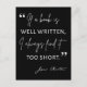 "Se um livro está bem escrito, eu sempre o acho muito curto", citação de Jane Austen.