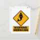 Este design de sinal de aviso em forma de diamante mostra a silhueta de uma sereia com texto abaixo lendo "Aviso: Sereias."