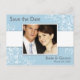 Cartão postal azul e branco para salvar a data