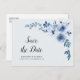 Cartão Postal azul floral salvar a data