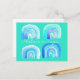 Design colorido fofo de arco-íris estampado em azul e aqua com um tema boho e Eu acredito na magia citação Criativo e artístico contra um fundo azul aqua. estilo de arte de colagem de padrão.