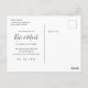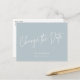 Adiamento de casamento personalizado/alteração do cartão postal com design de inscrição manual branca moderna sobre fundo azul empoeirado.