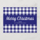 Cartão Postal Azul Xadrez Gingham Letra Maiúscula Natal Feliz