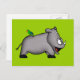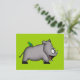 Rinoceronte de desenho animado bonito com uma pequena bolota e um pássaro verde e azul escondido sobre sua pequena cinza. Arte digital original de Taylor Addams.