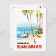 Cartão Postal Bahamas, Pessoas jovens na praia e Palm Trees