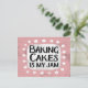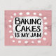 "Baking Cakes Is My Jam" é um design de texto fofo, cor-de-rosa, com texto preto, junto com um sotaque branco e pontos brancos texturizados ao seu redor.