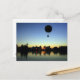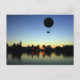 Um balão e cidade em Silhoutte ao Sunset, com reflexões em um lago.