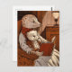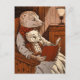 A imagem mostra uma cena quente de dois furões, um adulto e um jovem, sentados em uma poltrona de madeira. O furão adulto, vestindo um lenço vermelho e branco, segura um livro grande com uma ligação vermelha, enquanto o mais jovem, vestindo óculos, está confortavelmente sentado no colo. A sala é iluminada com pouca intensidade por uma lâmpada colocada em uma mesa lateral, lançando um brilho quente no palco.
