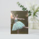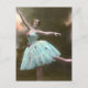 Fotografia colorida de uma dançarina de balé, em traje azul e chinelos cor-de-rosa