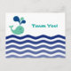 Horizontal Obrigado postal com design de baleia de desenho animado. Personalizar mensagem para qualquer ocasião. Voltar contém mensagens de modelo e endereços para personalizar.