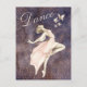 Cartão Postal Ballerina e Borboletas Dançam Balé roxo rosa