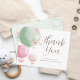 Seu convidado do chá de bebê vai adorar este cartão de agradecimento com balões em aquarela e mensagem moderna e personalizável no verso.