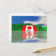 Cartão postal com minha trabalho de arte digital original de uma cena do lago com colinas verdes e uma bandeira canadense gigante.