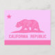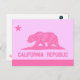 Cartão Postal Bandeira da República da Califórnia (rosa)
