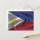 Cartão postal com a bandeira das Filipinas em um design de tecido ondulado. Este design apresenta as cores e o design da bandeira das Filipinas com um belo efeito de textura de material ondulante. Este design de bandeira é uma ótima maneira de mostrar que você tem orgulho de ser das Filipinas.