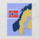 O pavilhão e o mapa da Noruega com o Reino da Noruega impressos em inglês e norueguês.
