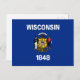 Essa design apresenta a bandeira estadual de Wisconsin, que fica no Centro-Oeste e nos Lagos Excelentes dos Estados Unidos. É confinado por Minnesota a oeste, Iowa a sudoeste, Illinois a sul, lago Michigan a leste, Michigan a nordeste e lago Superior a norte. A capital estadual de Wisconsin é Madison, e sua maior cidade é Milwaukee. O Estado é um dos principais produtores de leite do país e é conhecido como "Dairyland da América". É também conhecido como "Estado de Badger". A bandeira estadual de Wisconsin apresenta a casaco de armas do estado em fundo azul; mostra também texto contendo o nome do estado e o ano de 1848, que foi o ano em que Wisconsin foi admitido à União.