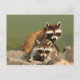 Dois guaxinins jovens perto da borda da água. A característica física mais característica do guaxinim é a área de pelagem preta ao redor dos olhos, que contrasta fortemente com a coloração da face branca ao redor. Isto faz lembrar uma "máscara de bandido" e, por isso, melhorou a reputação do animal por malícia. Foto de Gary Miller