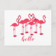 Cartão Postal Bando Rosa De Flamingos "Olá"