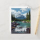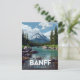 Capture the stunning natural beauty of the Canadian Rockies with this vintage travel-style design featuring Banff National Park. The illustration showcases an iconic, clear turquoise river flowing through a forested valley, framed by majestic pine trees and snow-capped mountains under a bright, cloudy sky. Perfect for anyone who loves nature, hiking, camping, and vintage tourism art. This design makes a wonderful keepsake or gift for visitors and admirers of Alberta, Canada's famous national park.