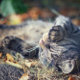 Um gato incrivelmente bonito relaxando e desfrutando do sol encontrado na fazenda 2022.