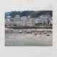 Imagem à beira-mar de barcos na costa, com a maré baixa e a vila circundante. Mousehole, Inglaterra.