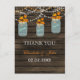 Rustic Barnwood, luzes de cordas balançando com folhas de queda num casamento de pedras Obrigado Cartões postais. Produtos correspondentes também disponíveis.