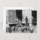 A musician plays his banjo for the chickens in a barnyard. 1927.