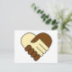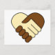 Um homem negro e um homem branco tremendo as mãos. Símbolo ou logotipo em forma de coração no cartão postal